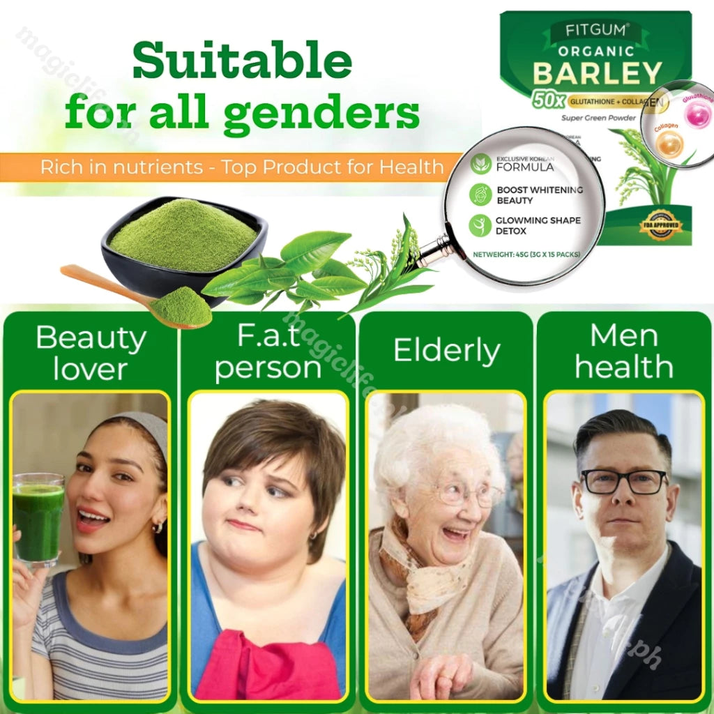 Fitgum Organic Barley with Glutathione & Collagen Juice Detox Drink (15sachets)